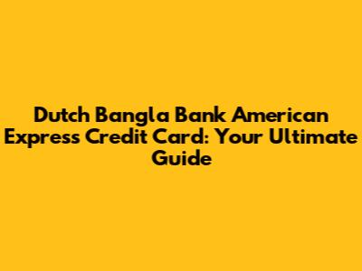 Unveiling the Dutch Bangla Bank American Express Credit Card