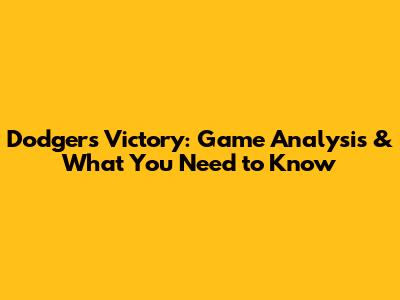 Dodgers Victory: Game Analysis & What You Need To Know