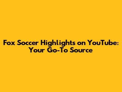 Fox Soccer Highlights On YouTube: Your Go-To Source