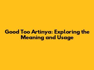 Decoding "Good Too Artinya": The Basics