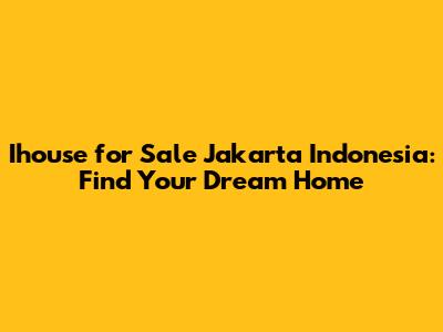 Ihouse For Sale Jakarta Indonesia: Find Your Dream Home
