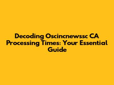 Oscincnewssc CA Processing Time Guide